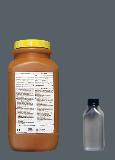 | Material 24h-Urin mit Zusatz Salzsäure -> 020, einsenden in 021b Alternativ: Anfallsurin -> 021b |