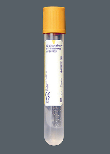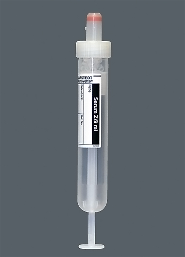 | Material Serum -> 010; 2 Möglichkeiten: 1) Volles Röhrchen, nach Gerinnung sofort zentrifugieren und dieses Röhrchen direkt einsenden oder 2) Röhrchen nach Gerinnung sofort zentrifugieren, Serum abgiessen und einfrieren (021a Röhrchen verwenden und möglichst füllen) Alternative: Heparin-Blut-Röhrchen: Blut sofort zentrifugieren, Plasma abtrennen und einfrieren (021a Röhrchen verwenden und möglichst füllen) |